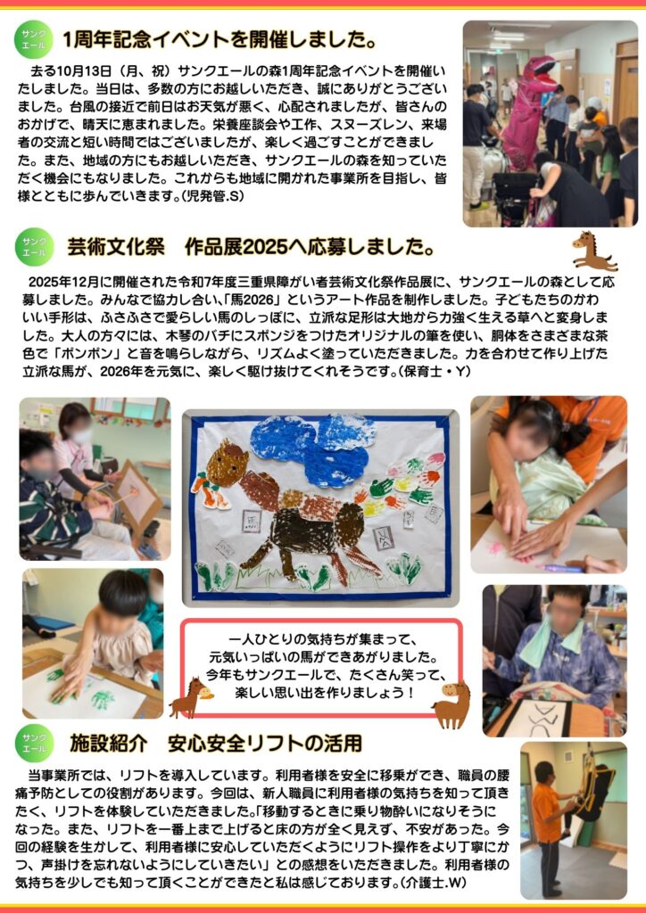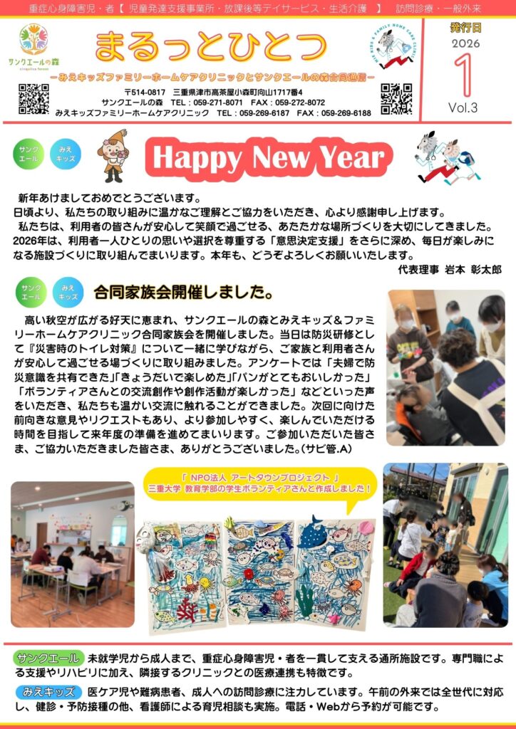 サンクエールの森、広報誌「まるっとひとつ」1月号が完成しました。今回は、昨夏からの様子を掲載しています。